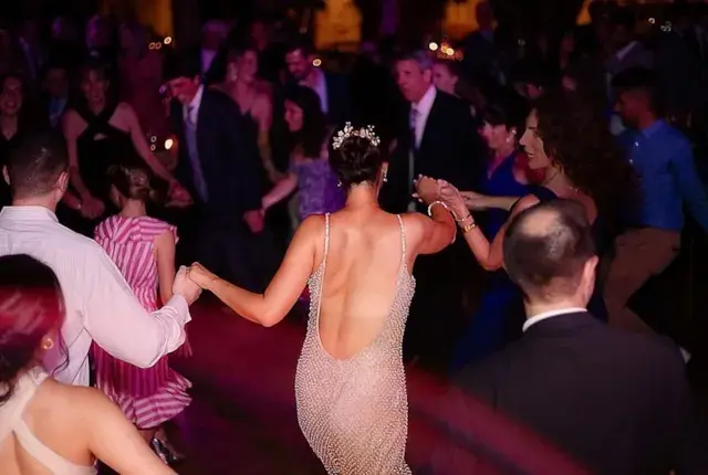 To set the mood for an extended evening of celebration, the couple and their guests danced to the electrifying tunes of the band Sarlas. The music filled the ballroom, creating an atmosphere of joy and festivity. As the night unfolded, guests were treated to late-night snacks of "Nick's Style" Stromboli and crispy french fries served in branded paper cups. It was the needed bite to fuel the dancing and festivities that continued into the night.