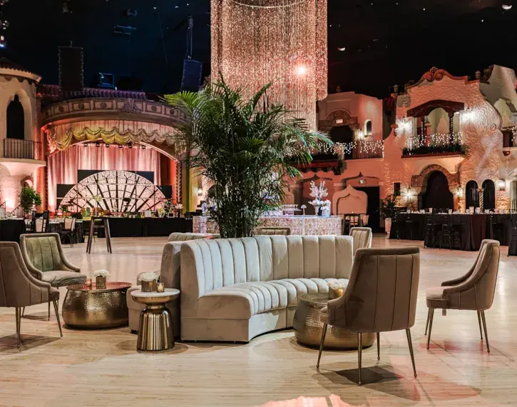 The venue’s recent renovation brought stunning upgrades including new chandeliers, draping, lighting, tile, and lounge seating, along with a reimagined bar and promenade that creates an elevated and seamless guest experience. The result is a space that honors nearly a century of history while meeting the demands of today’s most extraordinary events.